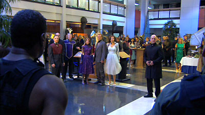 Daniel had been researching the Ancient artifact known as the Clava Thessara Infinitas, and by cross referencing Athena's research with the cartouche of planets, he had generated a gate address for P4M-328 as a possible location for the Ancient tablet and treasure. However, when SG-1 arrived on the planet, they discovered that the stargate was an exhibit in a museum, among many other Goa'uld and Jaffa artifacts, writings, armor, and weapons. In the museum lobby, many dignitaries had gathered for a formal reception, and because of the planet's level of development, SG-1 attempted to observe basic protocol and make an inconspicuous departure so that first contact could be made by MALP rather than in person. However, while the stargate was genuine, the DHD was a reconstruction, and before the team could find an alternate means to dial out, they were mistaken as rebels, the guests panicked, weapons were fired, an alarm was triggered, the building was sealed, and SG-1 became the unwitting captors in a hostage situation.