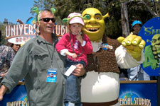 Wearing matching Shrek ears, Richard and Wylie posed for the cameras with Shrek himself.