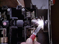 Kate used a battery and jumper cables to create an arc welder to cut through iron bars